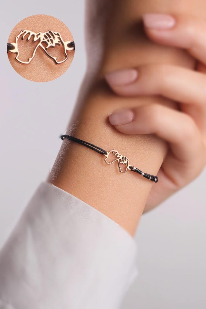 Brățară Pinkie Promise este o brățară pe șnur, reglabilă datorită nodurilor culisabile.