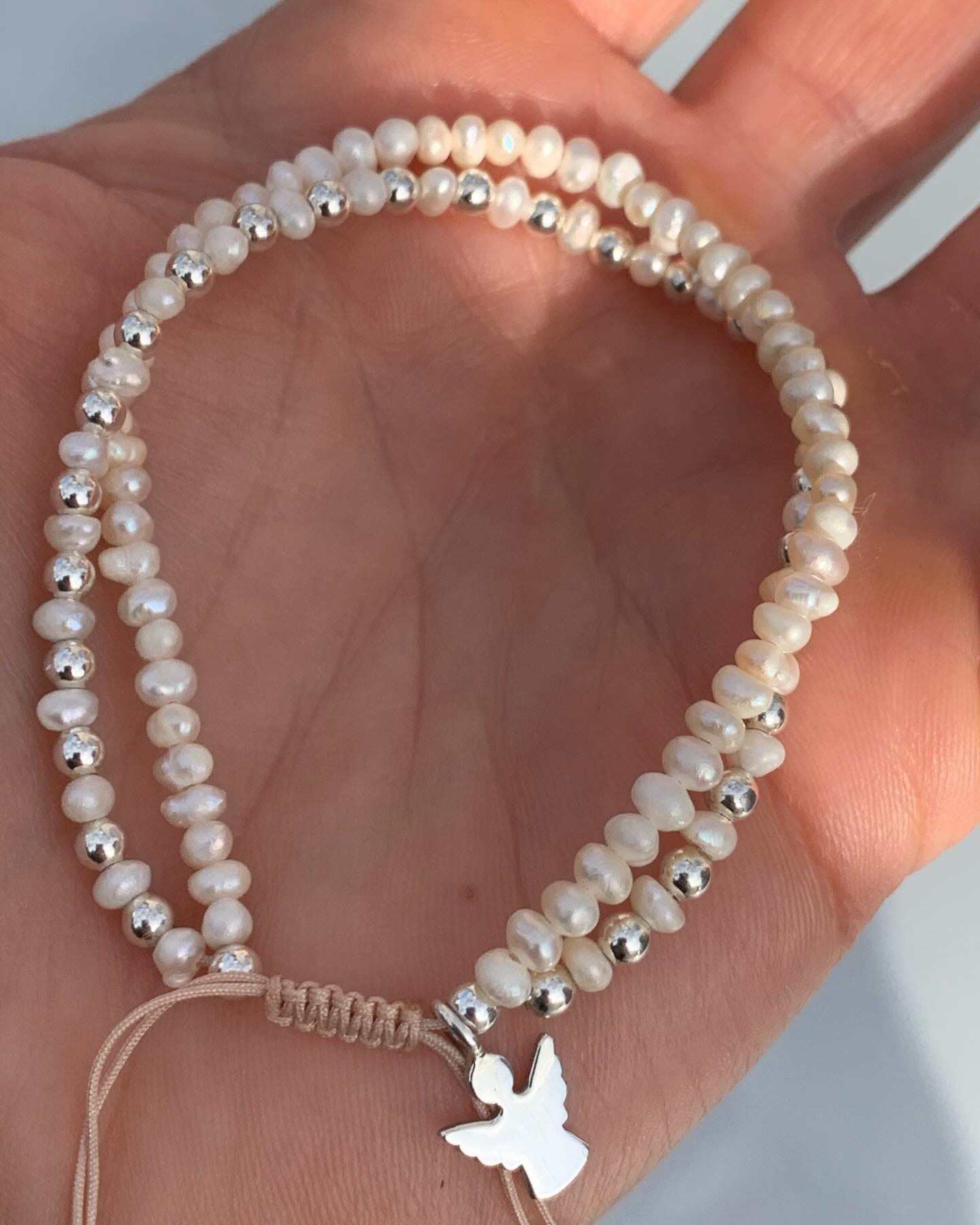 Brățara este realizată din perlă de cultură “pui”, freshwater și mărgeluțe argint. 🤍🐚