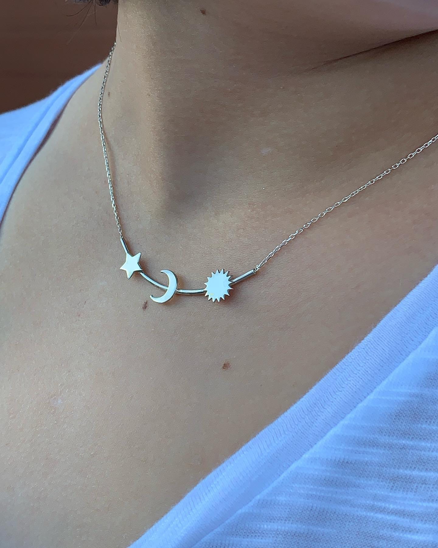 Întreaga galaxie într-un singur lănțișor. Un accesoriu care exprimă complexitatea femeii, puternică precum soarele, misterioasă precum Luna și strălucitoare ca o stea pe cerul unei nopți senine.